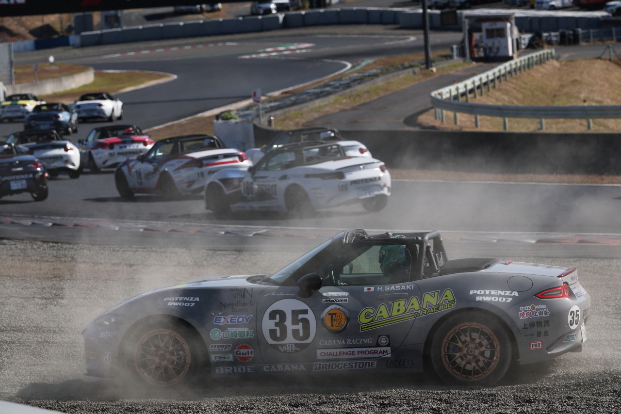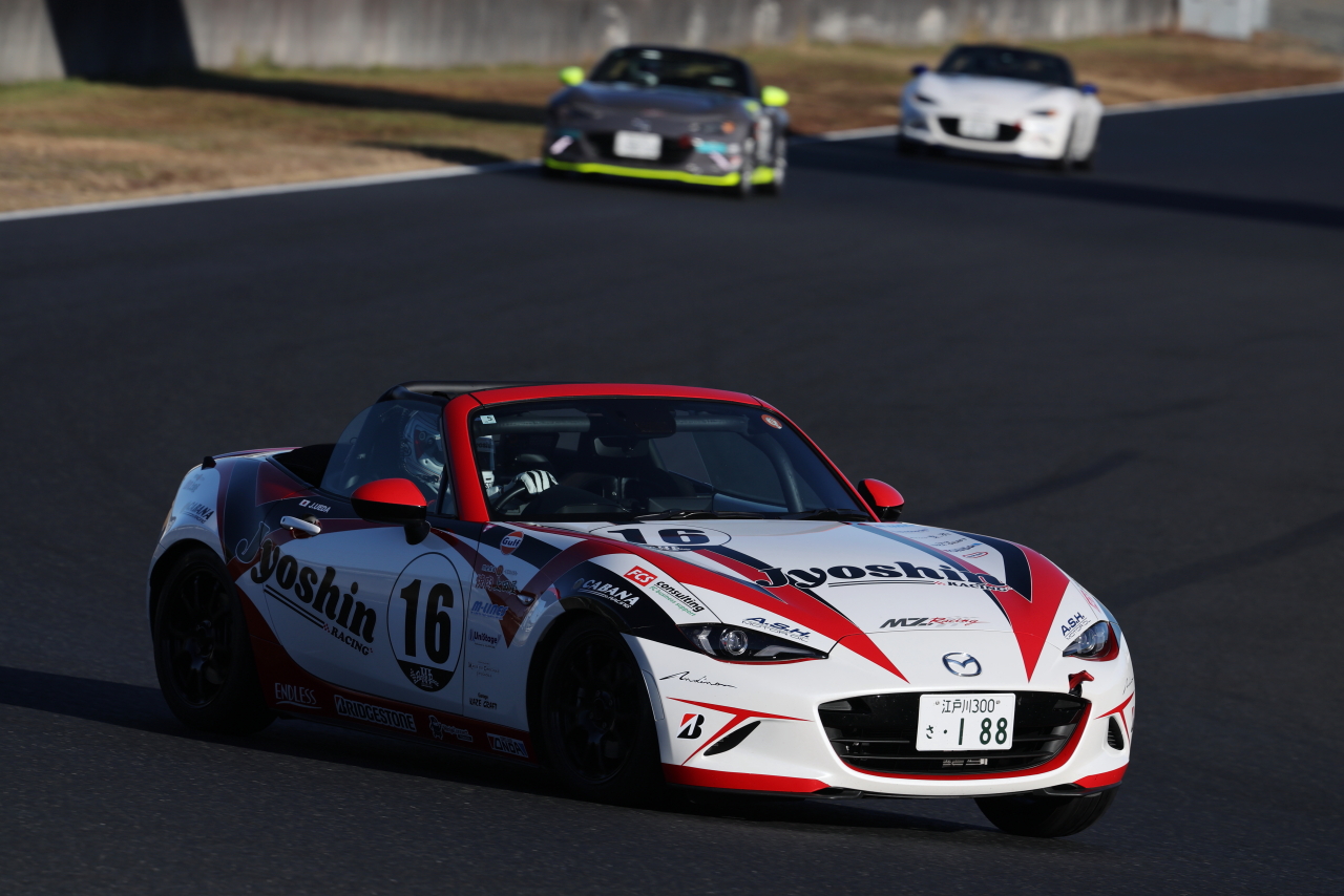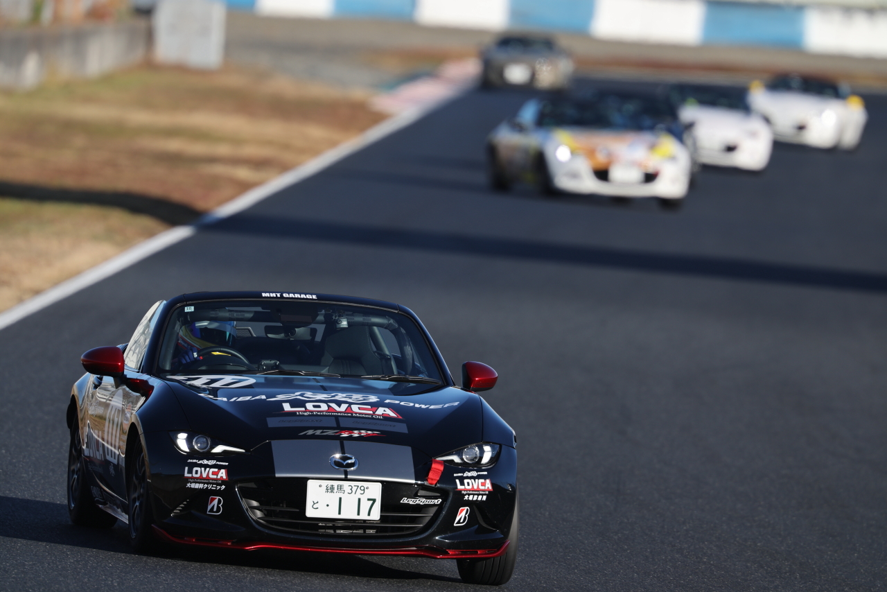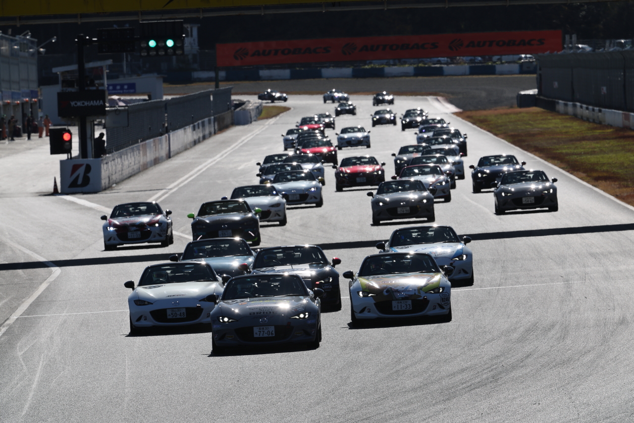 岡山国際サーキットにて11月22日、ロードスター・パーティレースⅢジャパンツアーシリーズ第8戦と西日本シリーズ第4戦がダブルタイトルで開催された。史上最多の34台のエントリーを集めたNDシリーズクラスでは、すでに今季3勝を挙げている156号車の山田 遼が予選2番手からの逆転で優勝。これで限りなくチャンピオンの座にも近づいた。なお西日本シリーズは、今回欠場した88号車の本多永一が7度目の王座獲得となった。