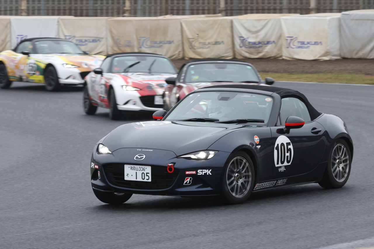 茨城県の筑波サーキットで10月26日、ロードスター・パーティレースⅢジャパンツアーシリーズの第7戦が東日本シリーズの第4戦とダブルタイトルで開催された。36台のエントリーを集めて予選が分割されたNDシリーズを制したのは35号車の佐々木光。昨年の筑波ラウンドで終盤に2連勝した得意のコースで、ポールtoウインの圧勝劇を披露した。
