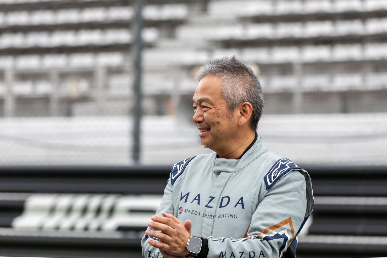 この日は「マツチャレ」という全国のマツダ・ディーラー各社による3時間の耐久レースも開催されたため、メディア対抗の決勝は15時からというスケジュールが組まれた。その前に11時20分から開催されたセレモニーには、12号車「人馬一体」のドライバーでもあるマツダ専務執行役員の梅下隆一が登壇。